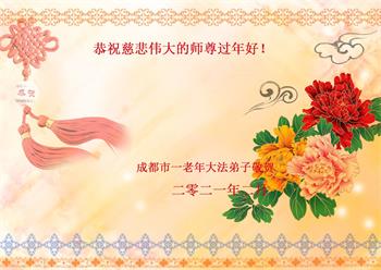 四川省成都市一老年大法弟子恭祝慈悲伟大的师尊过年好!