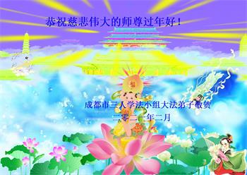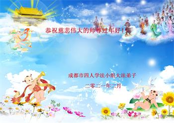 四川省成都市大法弟子恭祝慈悲伟大的师尊新年快乐!