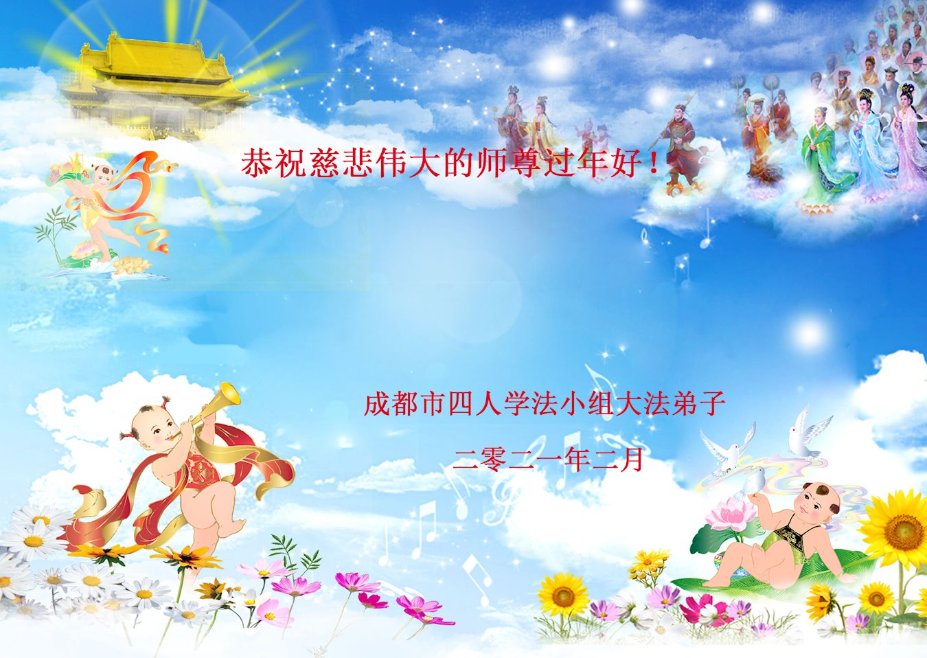 四川省成都市三人学法小组大法弟子恭祝慈悲伟大的师尊过年好!