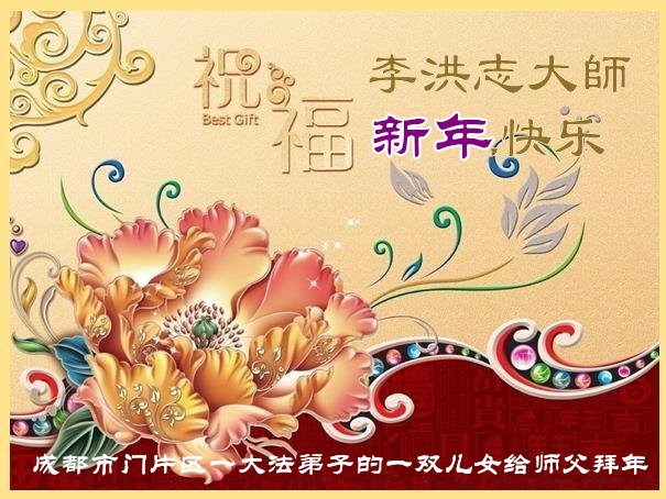 四川省成都市门片区一大法弟子的一双儿女祝愿李洪志大师年新年快乐!