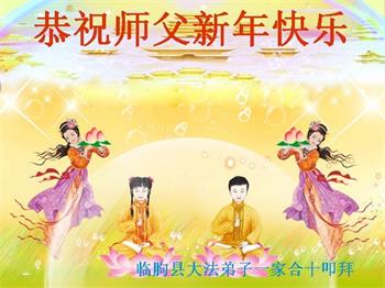 山东省潍坊市临朐县大法弟子一家恭祝慈悲伟大的师父新年快乐!