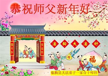 山东省潍坊市临朐县大法弟子一家恭祝慈悲伟大的师父新年好!