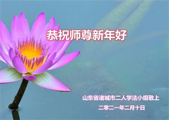 恭祝师尊新年快乐! 山东潍坊市潍城区大法弟子敬拜 二零二一年二月九日
