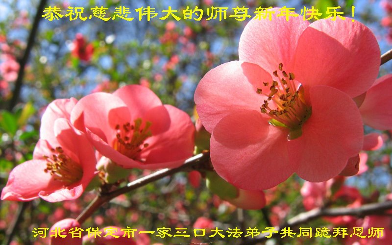 河北省保定市一家三口大法弟子恭祝慈悲伟大的师尊新年快乐!