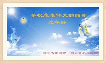 河北省保定市雄县一大法弟子全家祝贺师尊新年快乐!