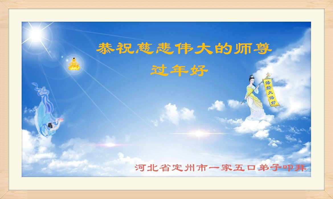 保定一夫妻大法弟子及全家十八人给师尊拜年:师尊过年好!叩谢师尊!