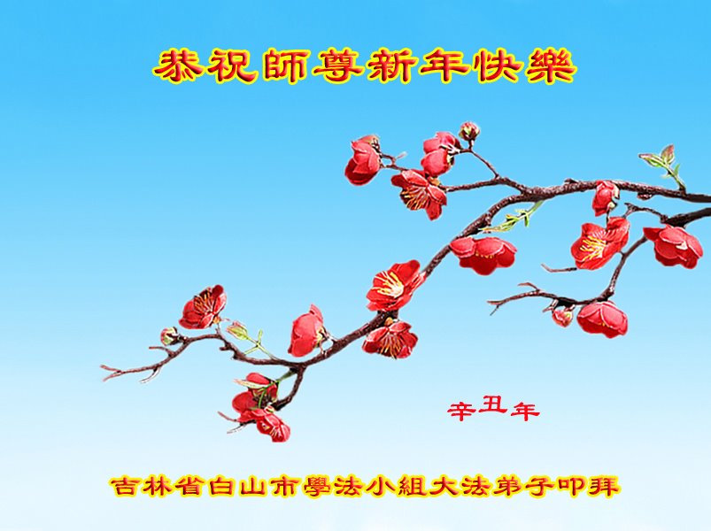 弟子给慈悲伟大的师尊拜年! 转瞬庚子成旧岁,迎来辛丑又一年。在这辞旧迎新、万家团圆的中国大年到来之际,白城市一家大法弟子给慈悲伟大的师尊拜年:师尊过年好!恭祝师尊牛年快乐! 衷心感恩师尊慈悲救度! 白城市一家大法弟子叩拜 庚子年腊月二十八日