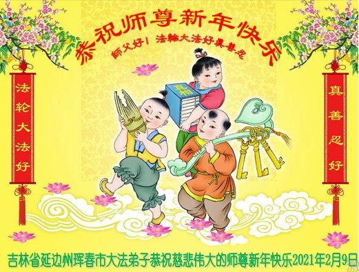 恭祝师尊新年快乐! 谢谢师父慈悲救度,师父您辛苦了,大陆大法弟子想念您! 公主岭大法弟子敬上 二零二一年二月九日