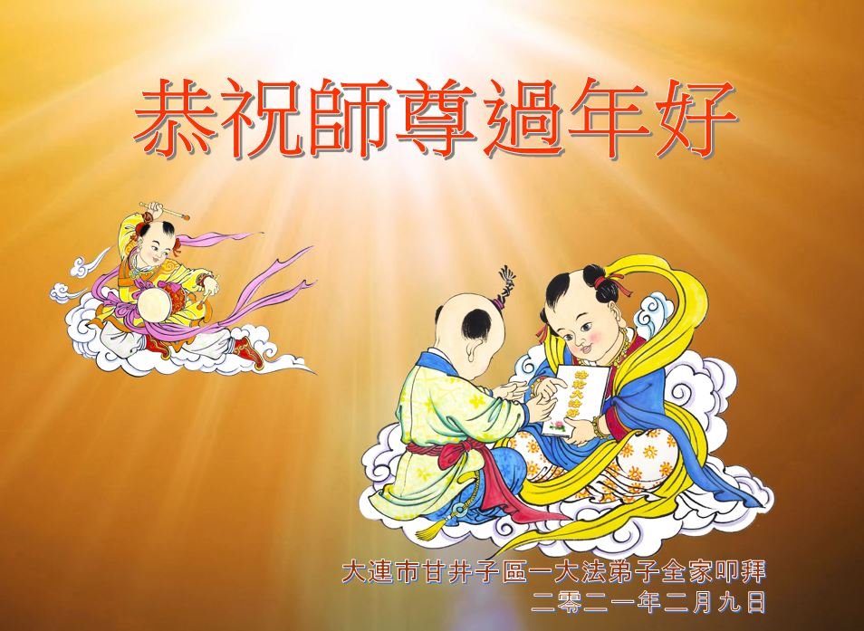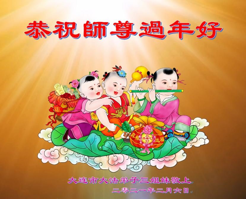 在这中国黄历新年到来之际,大连大法弟子恭祝慈悲伟大的师尊过年好,我们将一如既往,做好三件事,不负使命,不忘师恩。