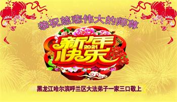 黑龙江省哈尔滨市呼兰区大法弟子一家三口恭祝师尊过年快乐!