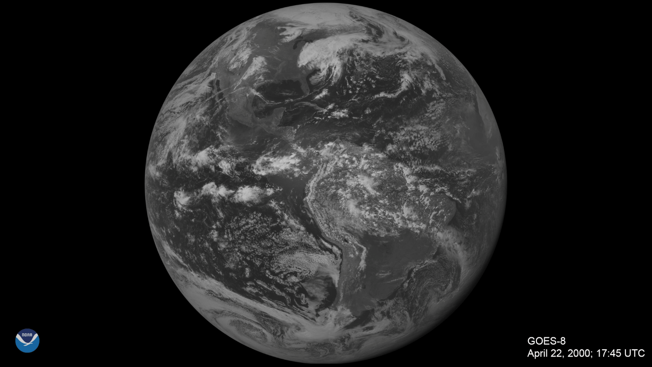 图4:2000年4月22日,从 GOES-8 satellite看到的地球。竟似一幅严重麻风病患的面容! |