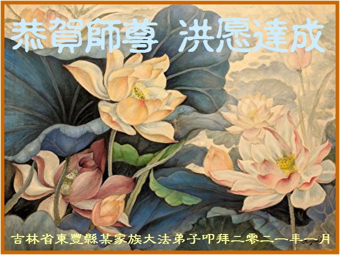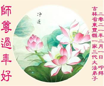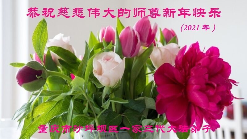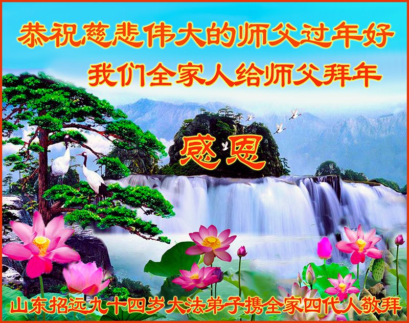 【明慧网二零二一年二月十四日】陕西省宝鸡市一大法弟子和全家人恭祝师父过年好!我们全家十几口人在师父的慈悲保护下个个受益匪浅,感恩师父的慈悲救度! 弟子唯有修好自己,多讲真相多救世人,走好最后的路,才能不负师恩。 谢谢师父!合十 黑龙江省龙江县大法弟子全家十二口人恭祝师尊过年好!师恩浩荡!我家十二口人,有的已经得法,有的尚未修炼但都很支持大法。值此新年来临之际,我们全家人的共同的心声是:向师父问好,给师父叩首拜年!以表达我们全家人对师尊的无尽的感恩! 黑龙江省龙江县大法弟子全家敬上 二零二一年二月一日 吉林省辽源市东丰县一家三代大法弟子给师尊拜年!我们家老中青三代都是大法弟子。大法将弟子们身心洗净,生命得以提升!感谢师尊的慈悲救度! 吉林省辽源市东丰县一家三代大法弟子 敬上 二零二一年二月一日 河北省秦皇岛市青龙县一家八口人恭祝师尊新年快乐!法轮大法真、善、忍的光辉时时刻刻照耀着我们家中的每一个人,我们全家八人都在大法中受益。在师父的保护下,出现很多奇迹。在新年来临之际,我们全家人恭祝慈悲伟大的师尊新年快乐! 随师回天门 每逢佳节倍思亲 一家八口想师尊 恭祝师尊新年好 叩谢师尊救度恩 完成救人史前愿 圆满随师回天门 河北省秦皇岛市青龙县一家八口人向师父跪拜 2021年1月28日 四川绵阳市大法弟子祖孙三代恭祝师父新年好!在中国新年来临之际,我们全家祖孙三代深深的感谢伟大的大法师父的慈悲救度!千言万语道不尽对师父的感恩!唯有按照师父的教导,按照真、善、忍做一个好人、更好的人,对社会有益的人。 河北省唐山市丰润区一大法弟子及全家四代人恭祝慈悲伟大的师父大年好!师尊您辛苦了!弟子是“七·二零”前得法的,现在已是四世同堂。我一人炼功,可全家人都受益。大家互敬互爱,健康平安,生活幸福无比,有师父真好!做师尊的弟子真好!弟子唯有精進实修,努力做好师尊让我做的“三件事”,完成史前大愿,以报师恩!圆满随师还。 谢谢师尊!合十 河北省唐山市丰润区一大法弟子率全家敬上 二零二一年二月四日 山东临沂一家族五代十几位大法弟子携家人恭祝慈悲伟大的恩师新年好!我们家现在五代人沐浴在您的佛光里!师尊时时看护着我们。 姥姥七十来岁得法后全身的病全好了。八十多岁时,一天凌晨元神离体远走,被师尊叫了回来,到现在九十八岁,仍然满面红光。 我得法前有八、九种病,得法修炼仅仅几个月,就变的无病一身轻,脱胎换骨一般。那种幸福与喜悦无以言表。邪恶中共发动了对法轮功和法轮功学员的迫害后,我多次被迫害致濒死边缘,是慈悲伟大的师父从死神手里夺回了我。 师父保护着我们走过了风风雨雨的二十三个春秋。我家从最年长的九十八岁的弟子到最小的九岁小弟子,以及没修炼的家人都受益于大法。二十三年来,全家族的人加在一起,一共只打过两次针。后来再遇到哪儿不舒服就念“法轮大法好”,很快就好了。 修炼前家人之间矛盾不断,现在则相互宽容忍让,心性都在提高。师父啊!我们学法得法了!当我们会用大法对照自己,真的放弃执着自我的时候,才真的感到什么叫大自在! 新的一年到了,我们大家族五代十几位大法弟子携家人合十叩首谢师恩!恭祝师尊新年快乐! 吉林省公主岭市母子大法弟子恭祝慈悲伟大的师尊过年好!无限感恩师尊的慈悲救度!多年来,我们母子二人在师尊的看护下,互相督促,不断精進,我们一定会更加努力做好三件事,不辜负师尊的慈悲救度,不辜负众生对大法弟子的期盼。惟愿师尊笑! 广西陆川县一家三口大法弟子及九十多岁的父母亲恭祝慈悲伟大的师父新年好!在以后的时间里,我们会一如既往的做好弟子们应该做的三件事,修好自己,兑现誓约,不辜负师父的慈悲苦度。 感恩师父! 宁夏姐妹三大法弟子恭祝师尊新年快乐!感谢师尊的慈悲救度!我们姐妹三要比学比修,勇猛精進、再精進,做好三件事。 山东烟台招远九十四岁的大法弟子携全家四代人恭祝师父过年好!师父,我们全家人感谢您传这么好的大法给人类,让我们今天能好好活在世上。我们全家人有修炼的,多数人还没有修炼,但是我们都知道大法好,都相信师父和大法,都相信中共邪*党-很快就要走向灭亡,那时所有的人才会相信大法是最好的高德大法。我们全家人都会跟定师父走到底的。 感恩慈悲伟大的师父!我们全家人给师父拜年!祝师父新年快乐! 宁夏大法弟子一家族四代人恭祝师尊新年快乐!师尊您辛苦了! 我们全家族四代人感恩师尊的慈悲救度!是师父和大法使我们家族上下老少人心归正,返本归真,有了美好的未来! 在新的一年里,作为大法弟子,我们要共同精進,修好自己,多救人,迎接师尊回国大团圆! 黑龙江省七台河市一家十一口恭祝师父过年好!师父过年好!师父辛苦了!我家虽然只有三人修大法,但未修炼的家人相信大法好,支持大法。在今后有限的时间里,作为修炼人,我们一定做好“三件事”,多救人;未修炼的家人也在帮修炼人救人,摆放好自己的位置。请师父放心! 江西省南昌市母女俩大法弟子恭祝师父新年好!我们母女俩有幸在末世先后走入大法修炼。我们唯有坚定修炼,互相提醒,互相鼓励,救度更多有缘人;做到学法入心,修炼如初,不辜负师父的慈悲苦度。在神的路上奋起直追,跟上正法進程,兑现自己的史前大愿。 叩拜师尊! 