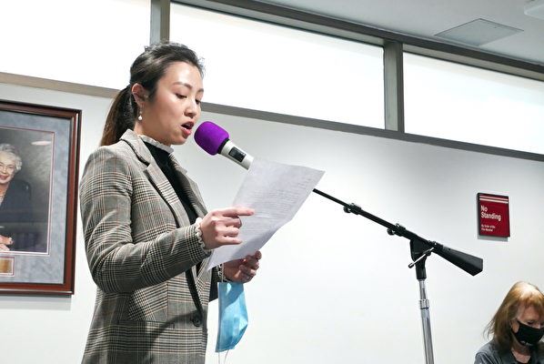 发起决议案的委员:感谢法轮功学员传递真相 发起决议案的委员耶斯丽·维嘉(Yesli Vega)向媒体表示,中共活摘法轮功学员器官的行径,“这是悲剧,这是完完全全不可接受的!” “我非常感谢(法轮功学员帮助)提高人们对此的认知,让我们都能了解在中国发生了什么。这样,我们能够尽我们的一份力量来制止活摘器官的发生。” 她也建议,美国联邦政府采取实际行动,制止中共这一“非人”罪恶。 法轮功学员代表在会议上发言 威廉王子县居民、法轮功学员Linh Pham(音译:林潘)在当天的委员会会议上发言,她说,“中共活摘人体器官的行径在美国媒体鲜有报导,我们发现威廉王子县的居民对此鲜有所闻。更加鲜为人知的是,活摘器官是中共大规模进行,并且持续迫害宗教少数族裔群体的最为恶劣的手段,主要针对法轮功学员。” “在几乎没有媒体报导的情况下,中共对法轮功的迫害已经持续了二十多年。即使在当前的瘟疫大流行中,中共最近也发起了一项新一轮的(迫害)运动,骚扰、拘留、监禁、酷刑折磨或迫害致死中国各地的法轮功学员。”  图3:威廉王子县居民、法轮功学员Linh Pham在当天的委员会会议上发言。 |