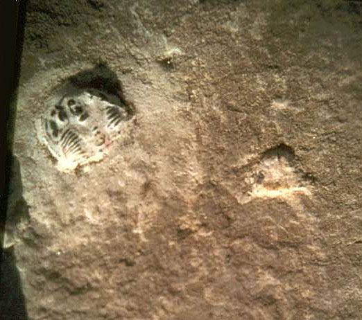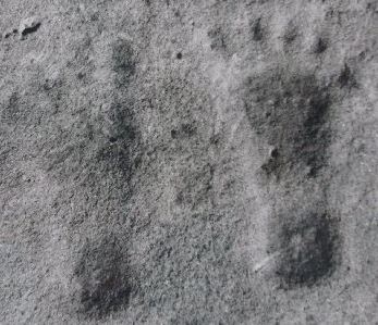 (三)岩堡县足迹(Rockcastle County footprints):美国肯塔基州岩堡县发现的十个完整的人类足迹和几个零碎的足迹。它们位于石炭纪的砂岩中。该化石的年代可追溯到距今3.2亿至3.6亿年前。  图8:岩堡县脚印化石 |