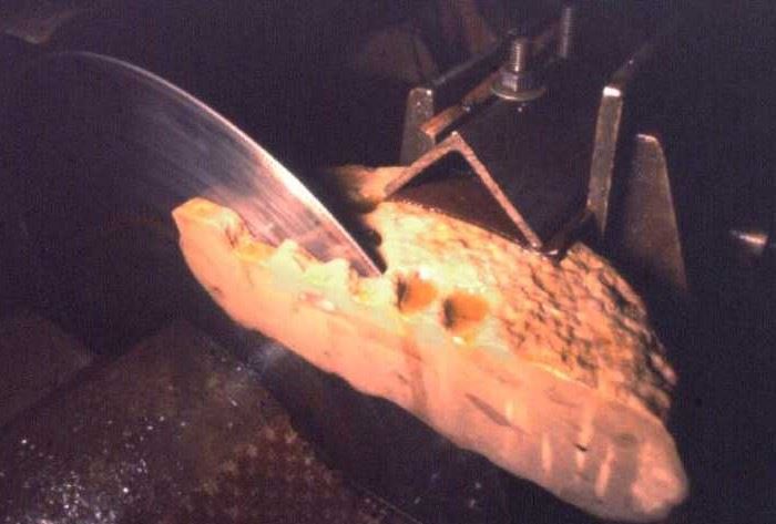 图4:对小孩脚印化石进行切割 |
