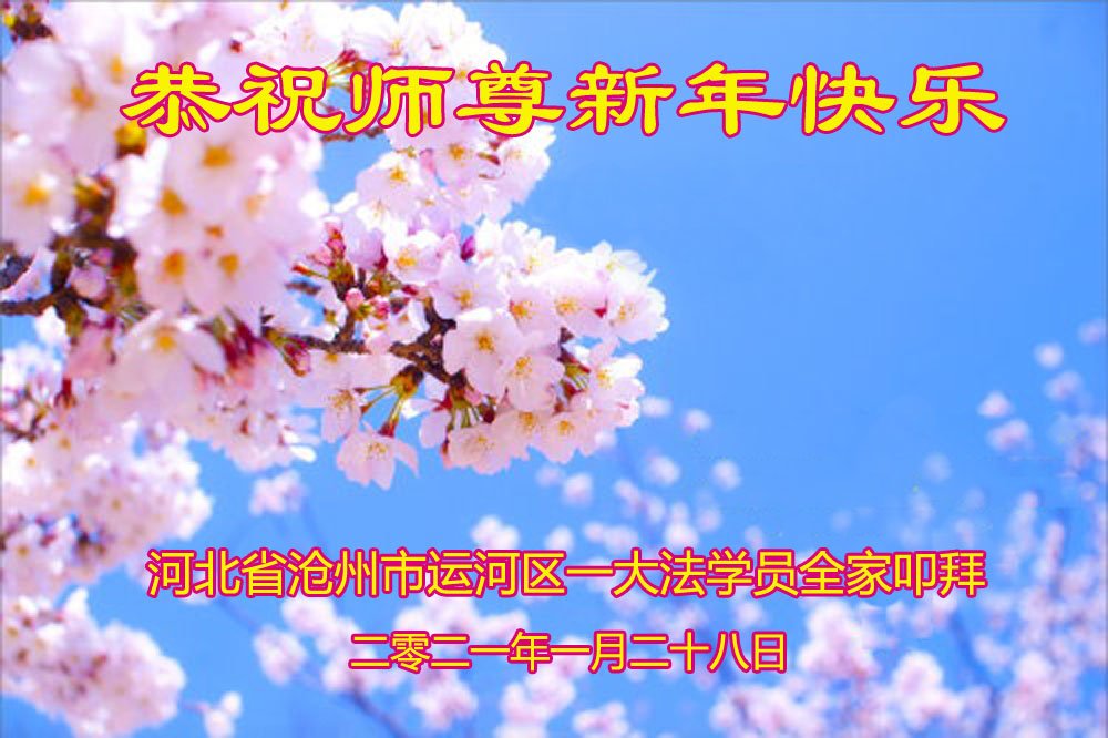【明慧网二零二一年二月九日】 河北省沧州市运河区一大法学员全家恭祝慈悲伟大的师尊新年快乐!