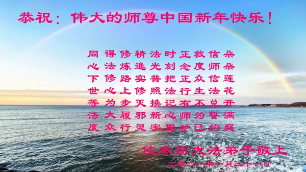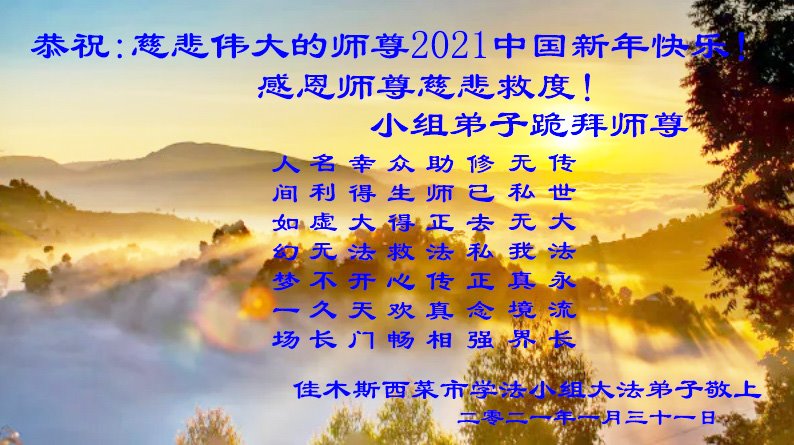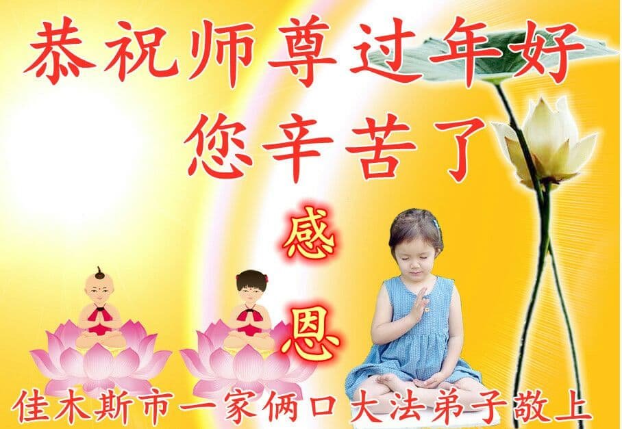 【明慧网二零二一年二月九日】 黑龙江省佳木斯市郊区一大法弟子及家人恭祝师尊过年好!