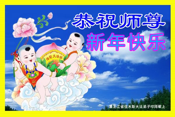 恭祝慈悲伟大的师尊新年快乐! 黑龙江省佳木斯大法弟子叩拜敬上 黑龙江省佳木斯一大法学习小组向伟大的师父问声过年好!