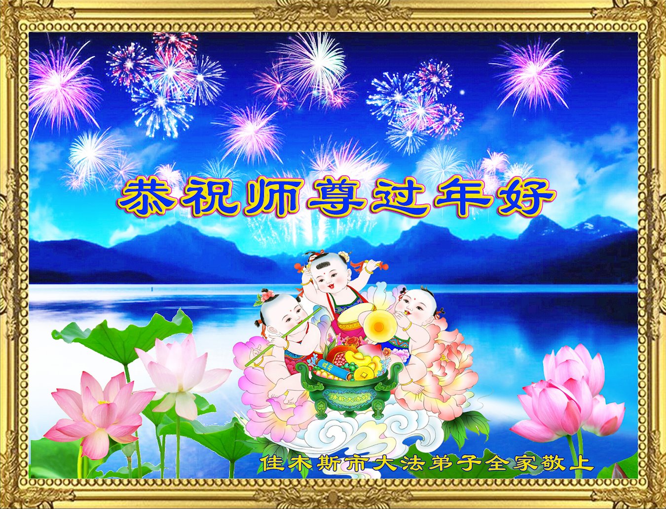 感恩师尊慈悲救度!师父您辛苦了! 弟子叩拜师父! 黑龙江省佳木斯市一大法弟子敬上 黑龙江省佳木斯市大法弟子全家恭祝师尊过年好!