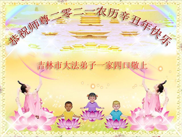 值此辞旧迎新之际,吉林市大法弟子一家恭祝师父过年好!师父您辛苦了!弟子谨记师父的教诲,学好法,多救人,做好三件事。感恩师父慈悲救度! |