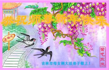 大陆吉林市大法弟子母子俩恭祝师尊新年快乐!