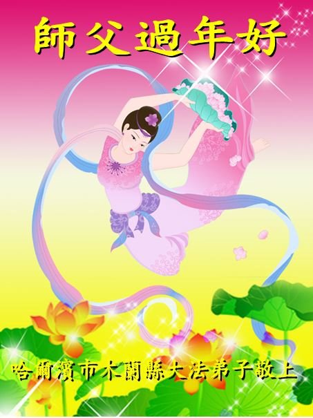 黑龙江省哈尔滨市大法弟子恭祝师尊新年快乐!弟子叩拜师尊! 黑龙江省哈尔滨一名大法弟子及明真相母亲敬上