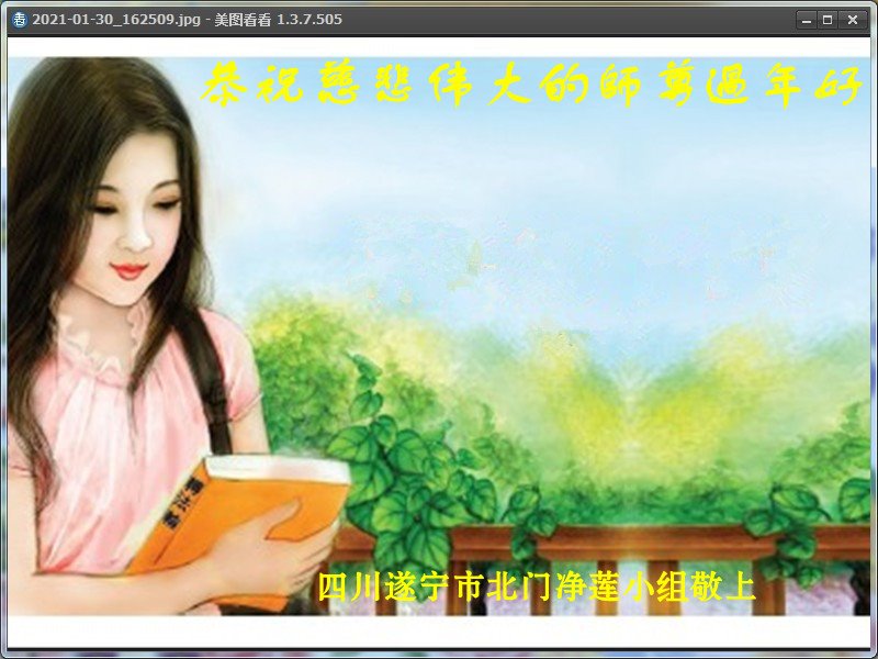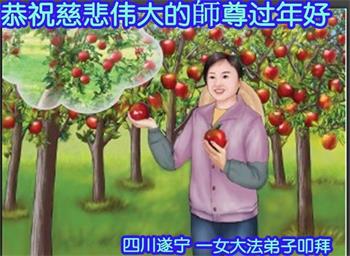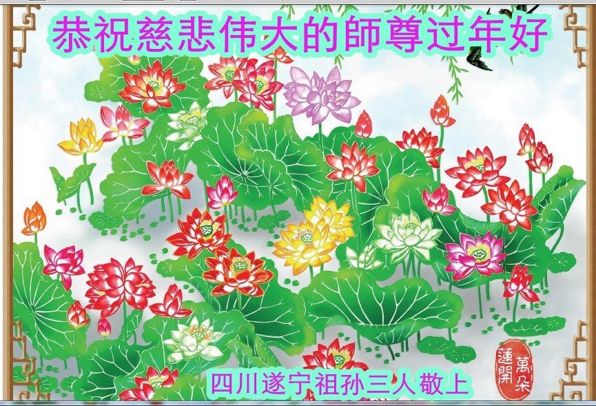 新的一年又到了,弟子们祝师尊新年快乐!我们一定紧跟师尊的正法進程做好师尊要求的三件事。 四川遂宁一女大法弟子恭祝慈悲伟大的师尊过年好!