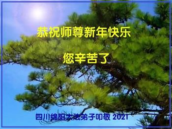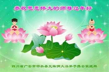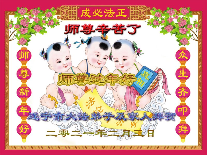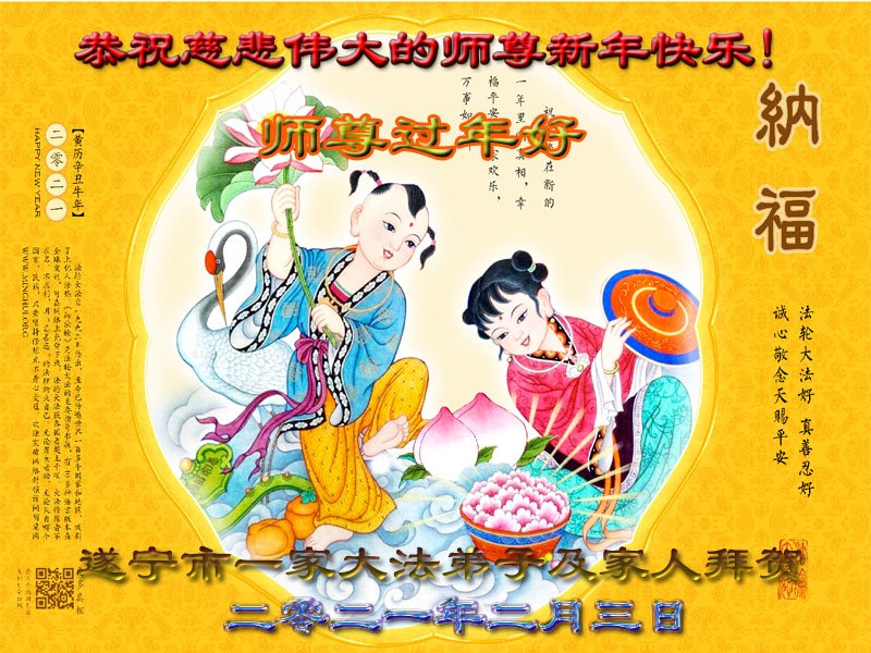 【明慧网二零二一年二月九日】 四川省遂宁市一大法弟子及家人恭祝师尊过年好!