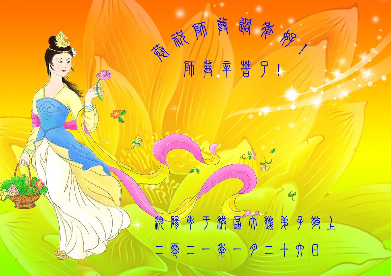 【明慧网二零二一年二月九日】 辽宁省沈阳大法弟子恭祝师父过年好!