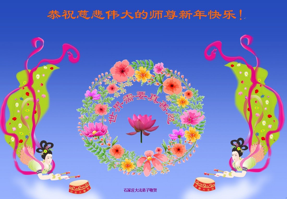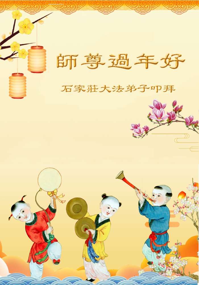 恭祝慈悲伟大的师尊过年好! 河北省石家庄大法弟子给师父拜年!