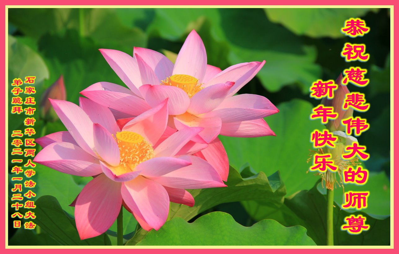 恭祝慈悲伟大的师尊新年快乐! 河北省石家庄市新华区两人学法小组大法弟子恭祝慈悲伟大的师尊过年好!
