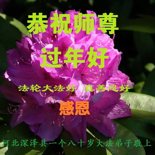 弟子恭祝慈悲伟大的师尊过年好!师父辛苦了! 弟子今后一定做好三件事,多发真相资料、多救人。完成使命、兑现来世誓约,圆满随师把家还。 跪拜师尊! 弟子敬上 全体河北省石家庄栾城区大法弟子恭祝师尊新年好!