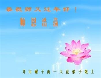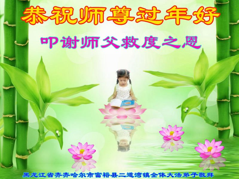 跪拜慈悲伟大的师父过年好! 黑龙江齐齐哈尔大法弟子向伟大的师尊问好!新年快乐! 在宇宙末法时期 师尊为了救度众生,层层下走为了众生得救,历尽艰辛。弟子唯有刻苦修炼救度世人来回报师尊的慈悲苦度。 再次感谢师尊,恭祝师尊新年快乐!合十 黑龙江省齐齐哈尔市富裕县二道湾镇全体大法弟子恭祝师尊过年好!