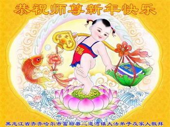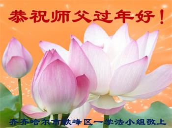 黑龙江省齐齐哈尔铁锋区一学法小组大法弟子恭祝师父过年好!