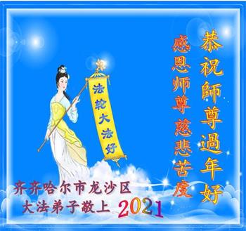 【明慧网二零二一年二月九日】 黑龙江省齐齐哈尔市碾子山全家大法弟子恭祝慈悲伟大的师尊过年好!