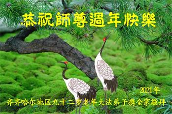 黑龙江省齐齐哈尔市一老年大法弟子问候师尊过年好!