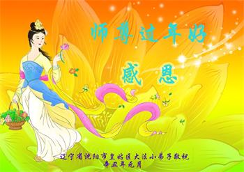 恭祝慈悲伟大的师父过年好! 我是大法小弟子,我爷爷和奶奶都是大法弟子。我代表我们三人恭祝慈悲伟大的师父过年好!师父您辛苦了!谢谢师父! 辽宁省沈阳市皇姑区姐弟大法小弟子恭祝师尊过年好!