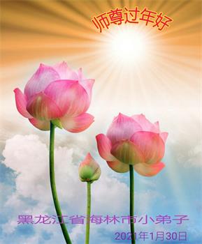 山西省大同市姐妹大法小弟子恭祝师父过年快乐! 大同市姐妹大法小弟子叩首跪拜! 黑龙江省佳木斯大法小弟子恭祝慈悲伟大的师尊过年好!