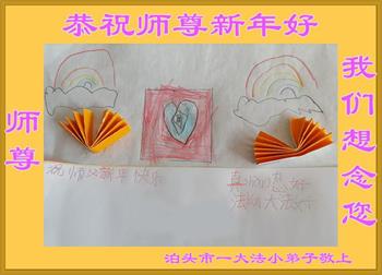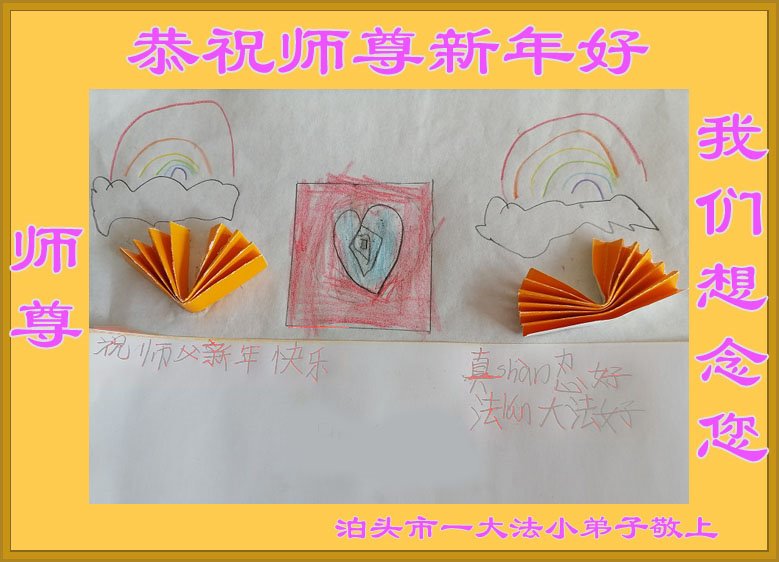 河南省三门峡市一大法弟子携家中大法小弟子恭祝师尊新年快乐!