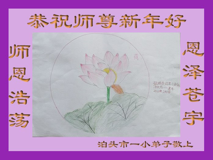 河北省邯郸市曲周县大法小弟子(8岁)恭祝师尊新年快乐!