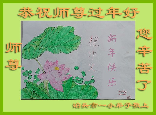 法轮大法好!真善忍好!师父好! 河北省沧州市泊头大法小弟子和学法小组大法弟子恭祝师尊新年好!