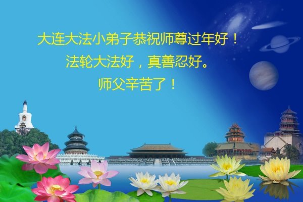 辽宁省大连大法小弟子恭祝师尊过年好!谢谢师父的慈悲苦度!师父辛苦了!