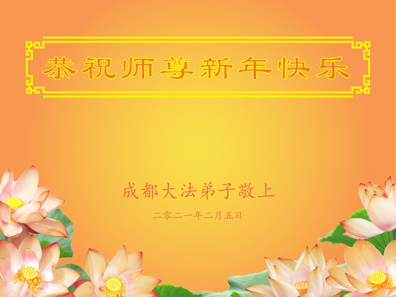 【明慧网二零二一年二月九日】 四川成都青白江城厢镇大法弟子恭祝师尊新年快乐!