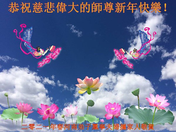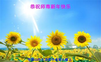 河南平顶山市大法弟子全家人恭祝慈悲伟大的师尊新年快乐!