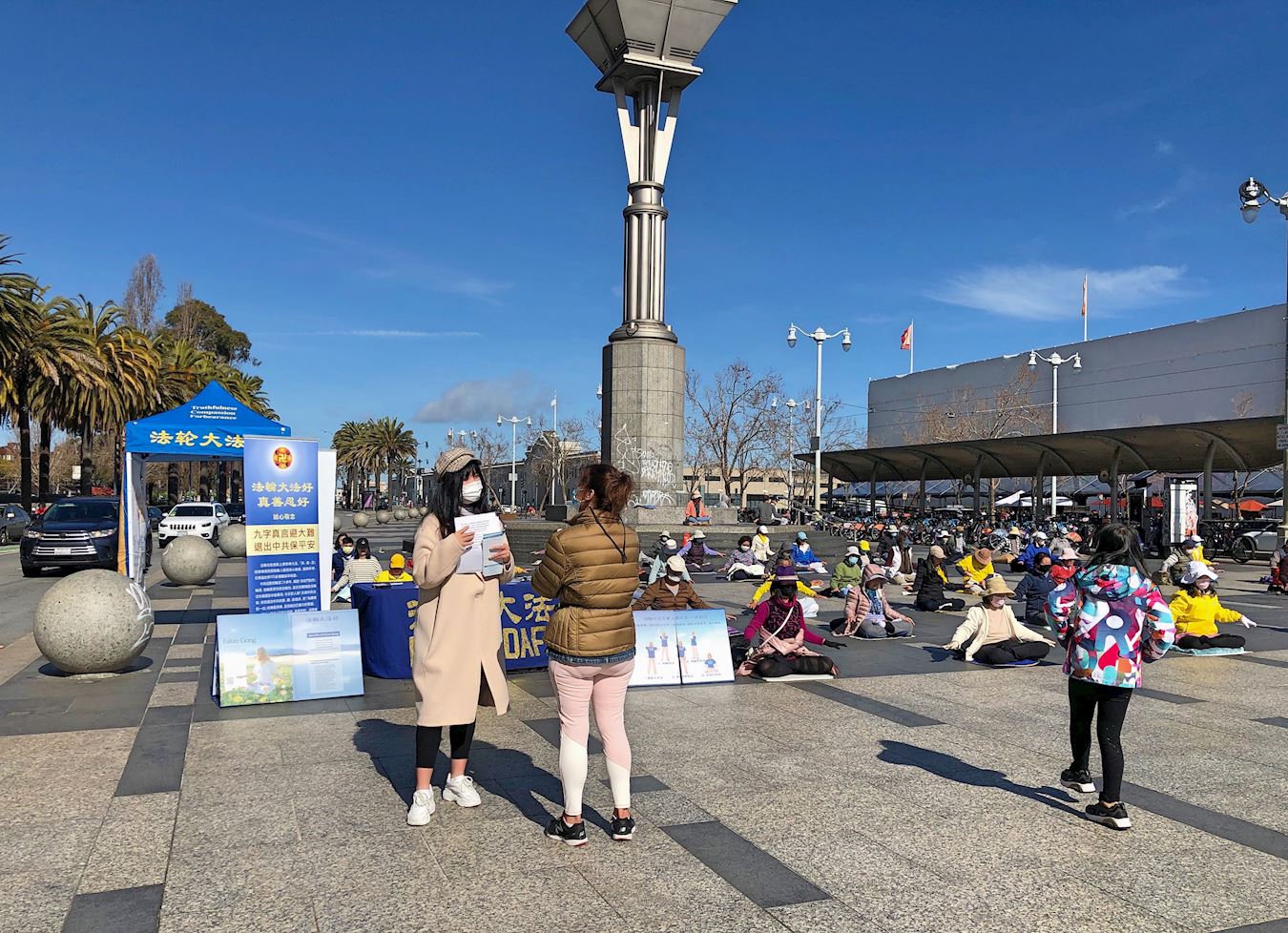 【明慧网二零二一年三月九日】二零二一年三月六日,美国旧金山部份法轮功学员来到渡轮大厦(San Francisco Ferry Building)前的广场集体炼功,告诉人们“法轮大法好,真善忍好”。有路人经过时表示感受到能量,并现场学功。 图1~2:二零二一年三月六日,旧金山部份法轮功学员来到渡轮大厦前的广场集体炼功,告诉人们“法轮大法好,真善忍好”。 |