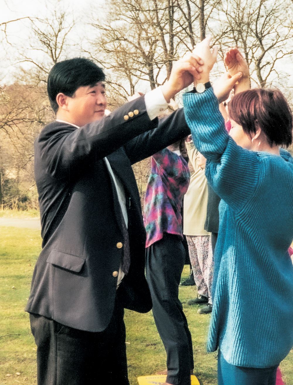 | 【明慧网二零二一年四月三日】(明慧记者何平瑞典采访报道)复活节在瑞典和西方国家是仅次于圣诞节的隆重节日,这个给生命带来希望的节日,对于瑞典的中西方法轮功学员来说也是意义非凡。这背后有什么故事呢? 二十六年前,一九九五年四月复活节期间,定居在瑞典哥德堡的中医师王医生,邀请到法轮功(法轮大法)创始人李洪志大师,亲自莅临瑞典传功讲法、在哥德堡举办七天讲法教功班,让这里的民众第一次听到了法轮功。 二零二一年复活节来临之际,王医生和一对瑞典母女回忆起二十六年前,有幸参加师父哥德堡讲法教功学习班的那一段美好经历时,仍历历在目,内心的喜悦和感激溢于言表。  图1:一九九五年四月在哥德堡讲法班期间,李洪志师父亲自教功、帮学员纠正动作。 |