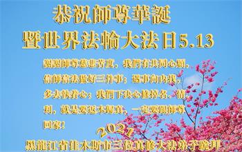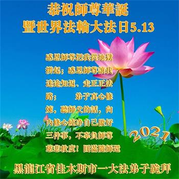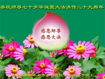 黑龙江省佳木斯大法弟子祝师父生日快乐!贺世界法轮大法日!