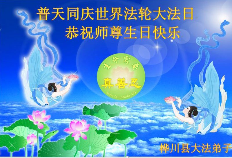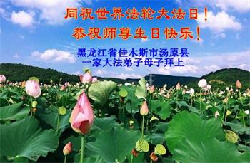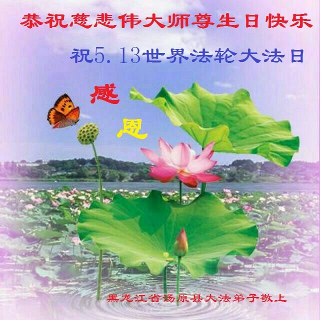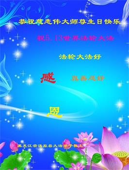 黑龙江省佳木斯市汤原县大法弟子恭祝慈悲伟大师父七十华诞,感恩师父慈悲救度,祝师父生日快乐!普天同庆世界法轮大法日!