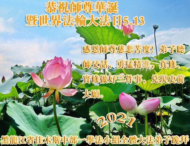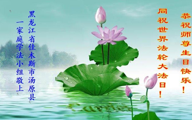 弟子日夜盼师尊 精進实修多救人 时刻心怀真善忍 不负师尊苦救度佳木斯大法弟子一家人 叩谢师尊慈悲救度! 黑龙江省佳木斯市汤原县一家庭学法小组大法弟子恭祝师尊生日快乐!同祝世界法轮大法日!