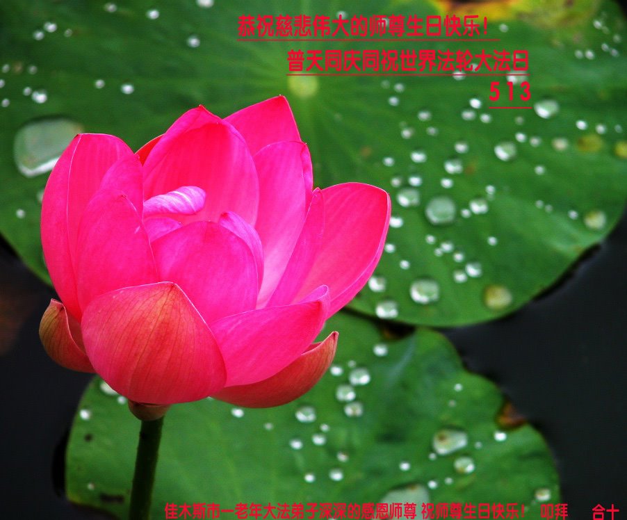 黑龙江省佳木斯一老年大法弟子恭贺世界法轮大法日!恭祝师尊生日快乐!